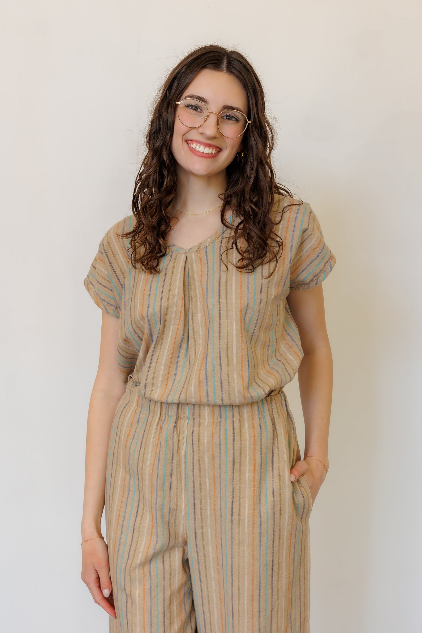 Olivia is 5'7.5 and wearing the Oasis Shirt in size S.