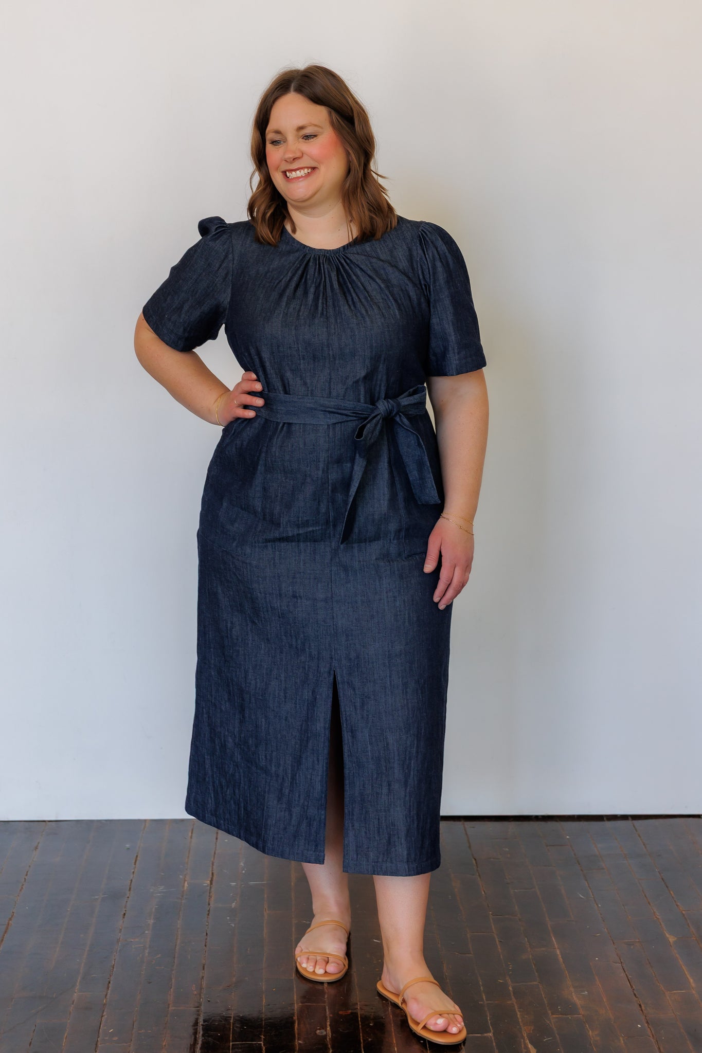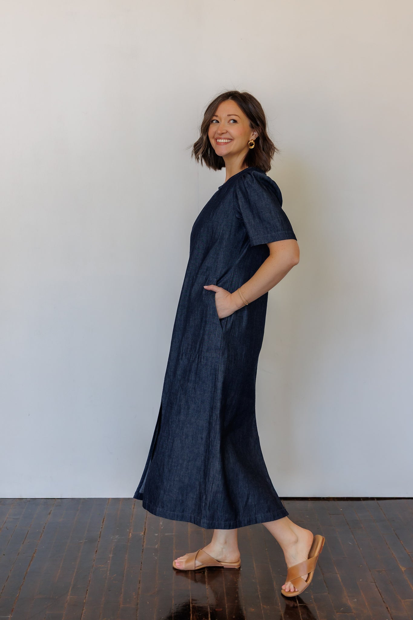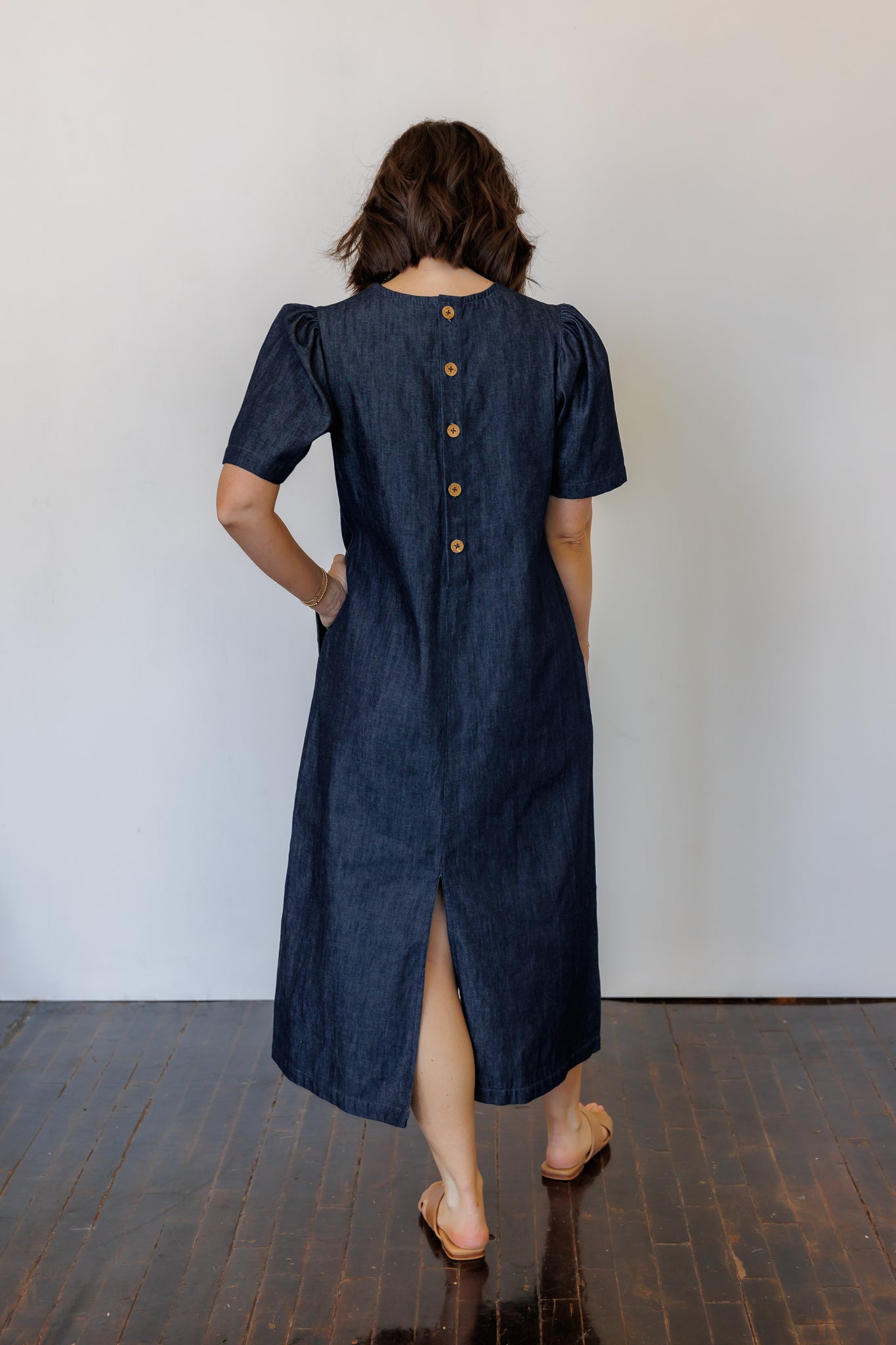 Like a LBD (little black dress), a denim dress truly is a wardrobe staple. The Terra Midi Dress effortlessly transitions from day to evening, casual to dressy. It is the dress to wear everywhere: comfortable, easy-to-move-in, put together. Gathered detailing at the collar and sleeves add feminine detail. Front and back slits create movement and ease.