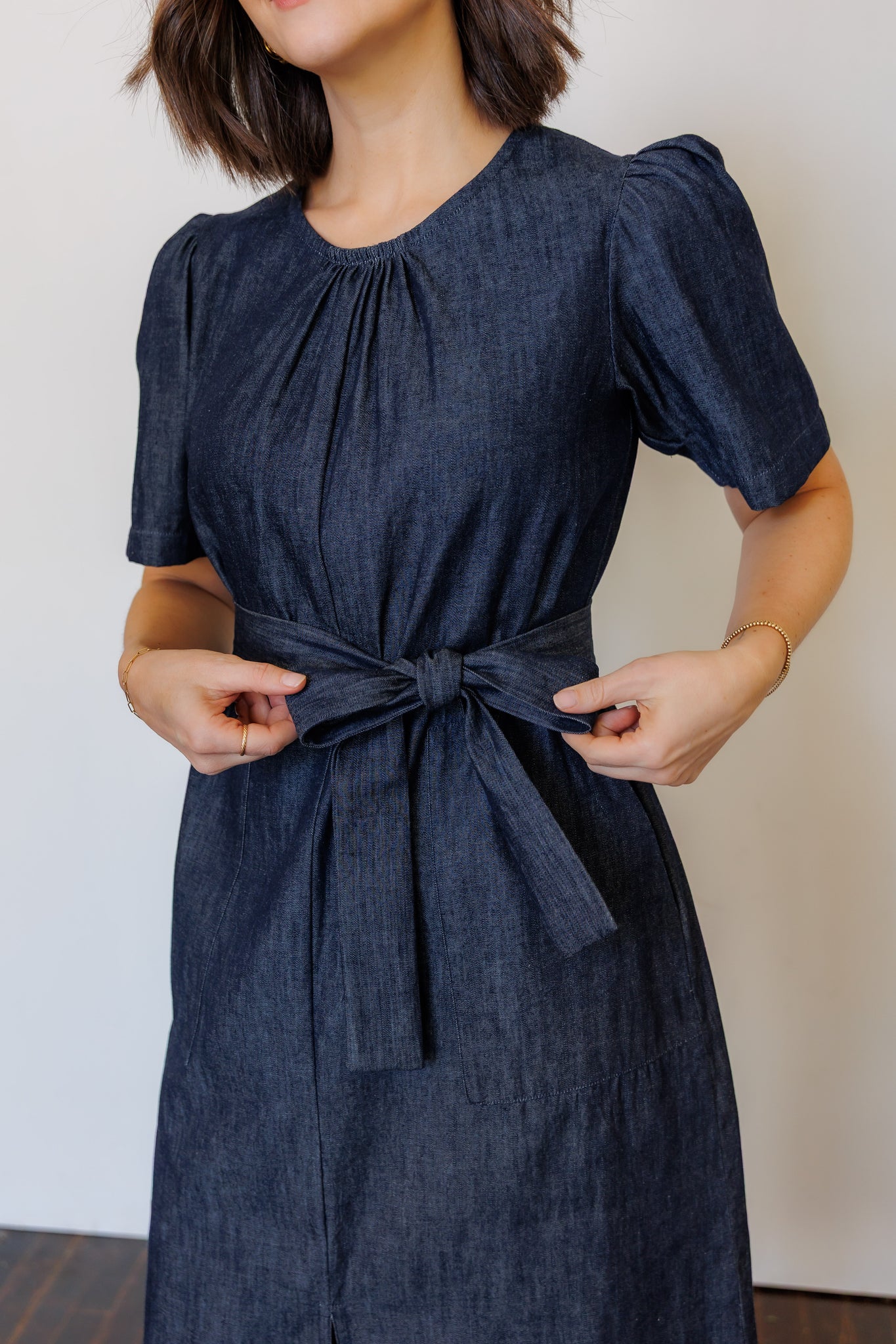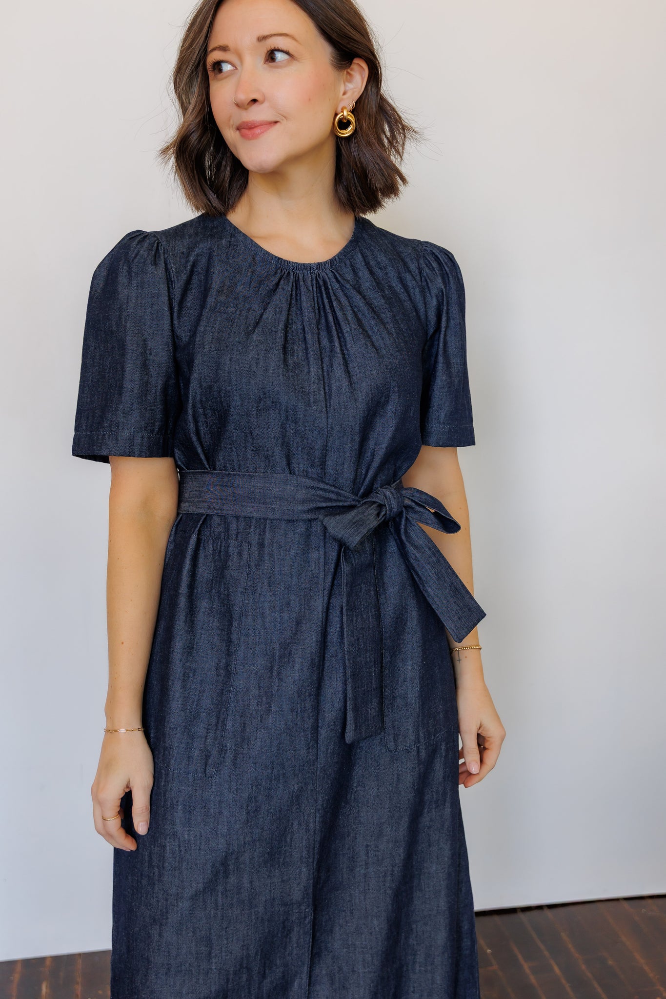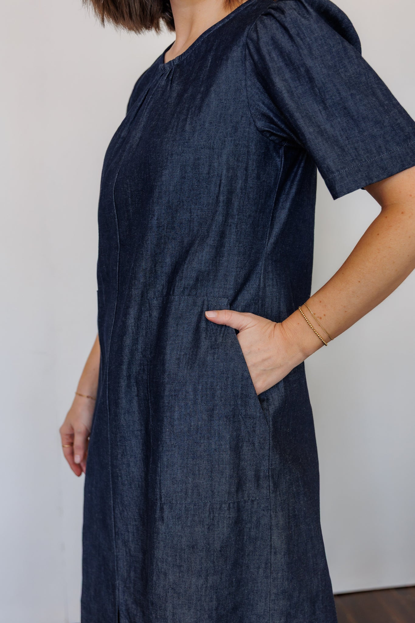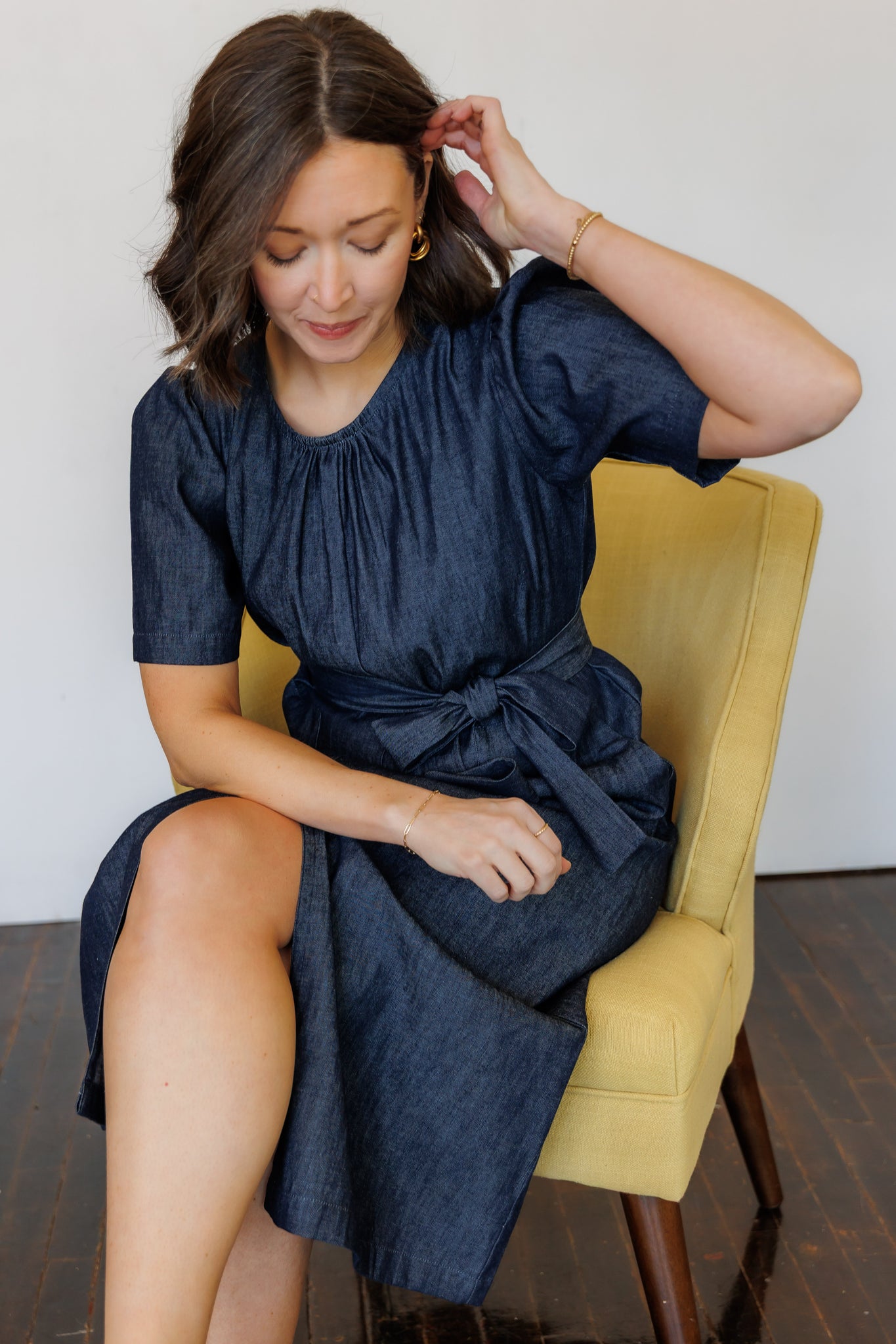 Like a LBD (little black dress), a denim dress truly is a wardrobe staple. The Terra Midi Dress effortlessly transitions from day to evening, casual to dressy. It is the dress to wear everywhere: comfortable, easy-to-move-in, put together. Gathered detailing at the collar and sleeves add feminine detail. Front and back slits create movement and ease.
